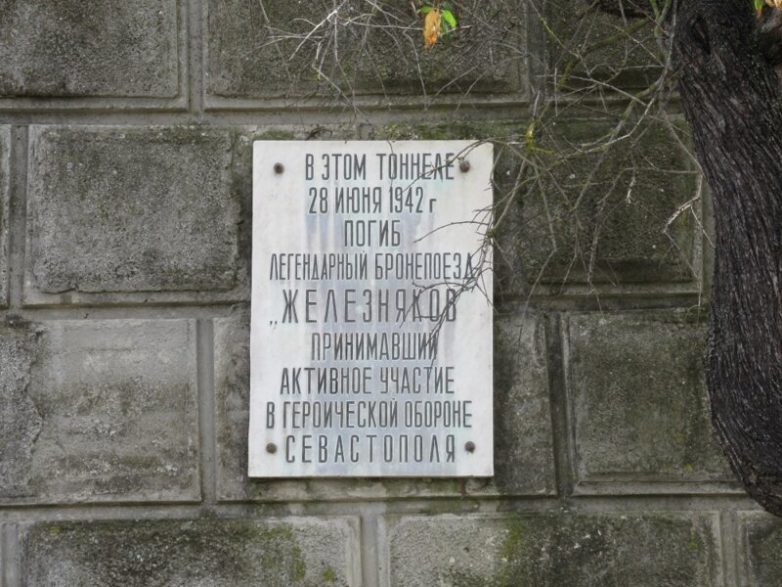 Что же касается вышеупомянутого памятника у автовокзала, то его история такова: в 70-е годы был установлен паровоз типа «ОВ» (овца), под названием «Памятник железнодорожникам, погибшим во время обороны Севастополя 1941-1942гг». Затем к очередному юбилею его переименовали а «Бронепоезд «Железнякова», украсив надписью «Смерть фашизму». В начале 90-х к поезду прицепили бронеплатформу.