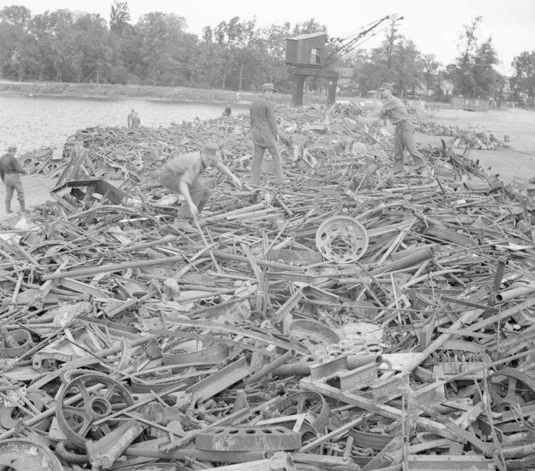 Танки, другие транспортные средства и артиллерия сначала перемещались в основные сборочные пункты, которые были разминированы и очищены от НРБ (неразорвавшихся боеприпасов). Находились они, как правило, на железнодорожных подъездных путях, на мощеных дорожных развязках и т. д. Оттуда материал разделялся по типу, весу, уровню повреждения и т. д. и отправлялся на «разборки».
