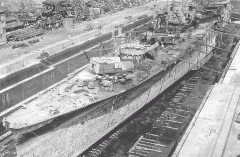 Разбитый крейсер IJN Tone, который был потоплен в Ита-Джиме летом 1945 года, был поднят в 1947 году, отбуксирован в Куре и сдан на слом в 1948 году. Это был последний сломанный военный корабль IJN весом более 3000 тонн.