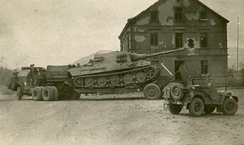 M26 перемещает восстановленный Jagdtiger в оккупированной Германии в конце Второй мировой войны.