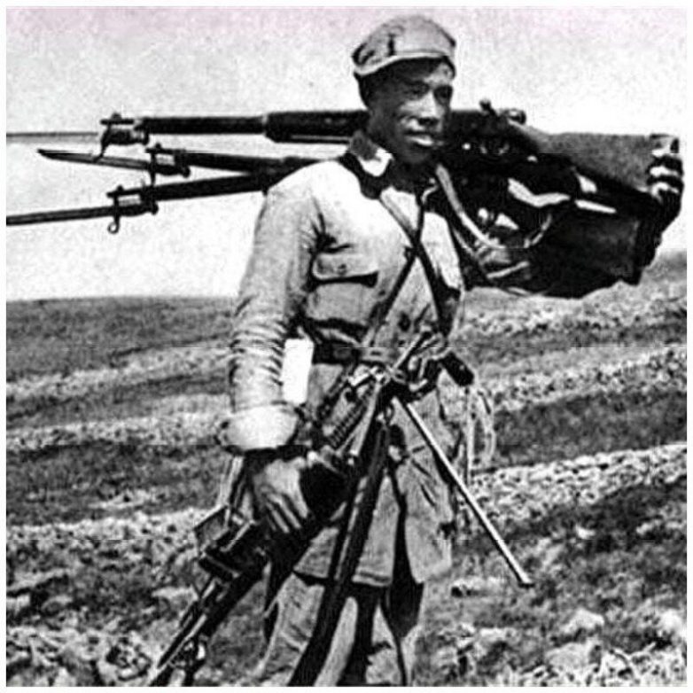 На фото китайский военнослужащий держит в руках спасенные винтовки Арисаки Тип 38 и пулемет Намбу Тип 11. После окончания Второй мировой войны, а затем и по окончании гражданской войны в Китае КНР все еще использовала бывшее японское оружие в 1950-х годах.