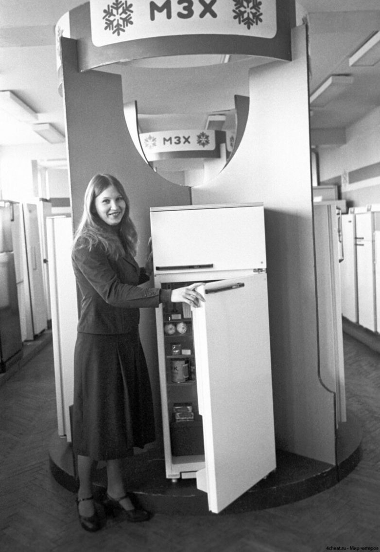 Холодильник ЗИЛ. Выпущен Московским автомобильным заводом имени И. А. Лихачева. Отличительная особенность этого холодильника – полки на дверце. 1970 год: