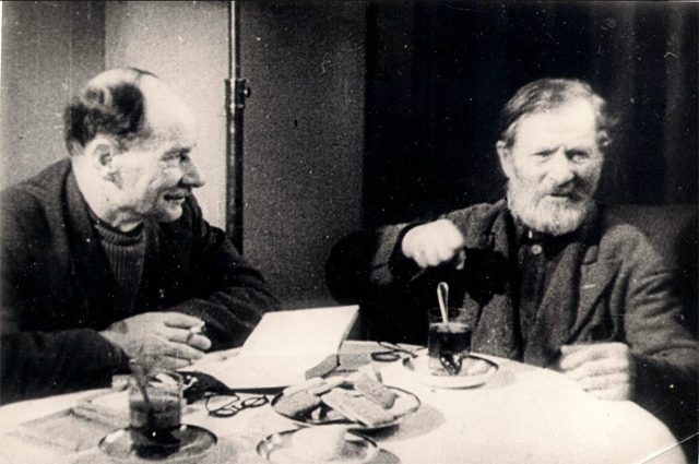 Дед Талаш (справа) и Якуб Колас в кабинете писателя. 1943 год