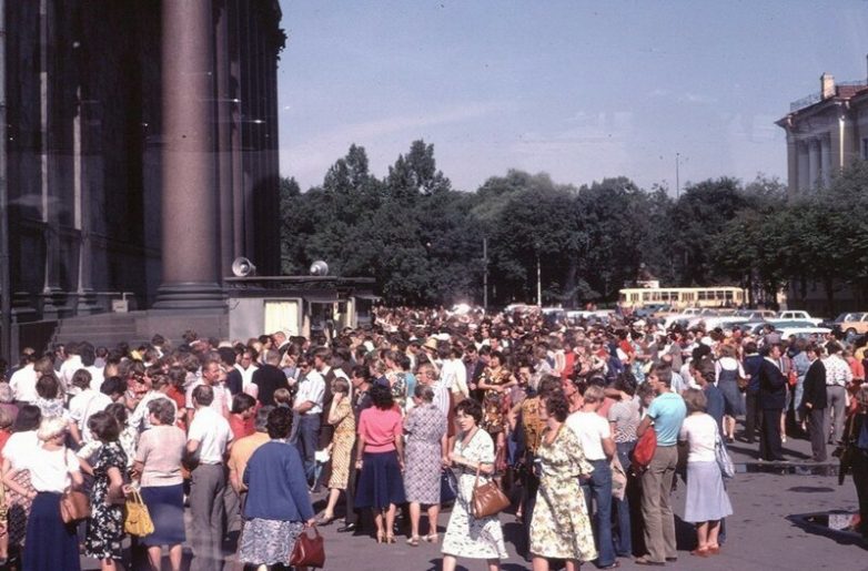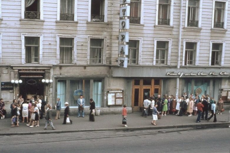Типичная картина очередей у ленинградских магазинов, 1979: