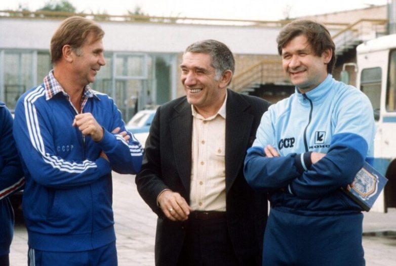 Старший тренер сборной СССР по хоккею Виктор Тихонов, артист Армен Джигарханян и тренер сборной СССР по хоккею Владимир Юрзинов на спортивной базе в Новогорске. 1984 год. Фото Игоря Уткина и Александра Яковлева /Фотохроника ТАСС/