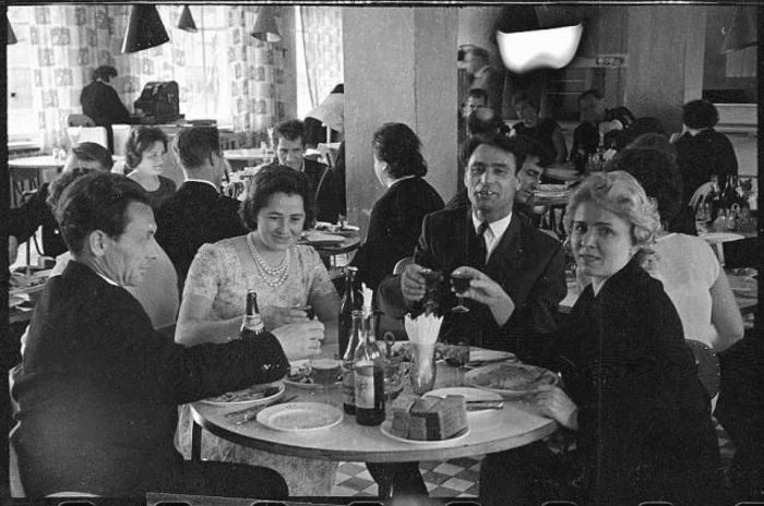 При Сталине рестораны 1-го и 2-го класса (сужу по областным городам) были дешёвые. За 12 сталинских рублей (1,2 р. хрущёвских) можно было пообедать (салат-селёдочка я с луком или крабы, или тресковая печень), 1-е блюдо (борщ мясной или солянка сборная мясная, или суп харчо), 2-е ( бефстроганов с картофелем фри и зелёным горошком или котлета по-киевски) с неизменными 100 граммами водки. Столик на празднование Нового года (с водкой и бутылкой шампанского) оплачивался 25-ю рублями на человека. В ресторанах не было наценки на спиртное. Словом, был рай. Хрущёв ввёл наценку на водку, Брежнев все цены упятерил-удесятерил, рестораны стали практически недоступны простолюдинам, во многих — качество блюд резко упало. Упоминая блаженные сталинские времена для шахтёров, совсем не оправдываю его жуткий режим.