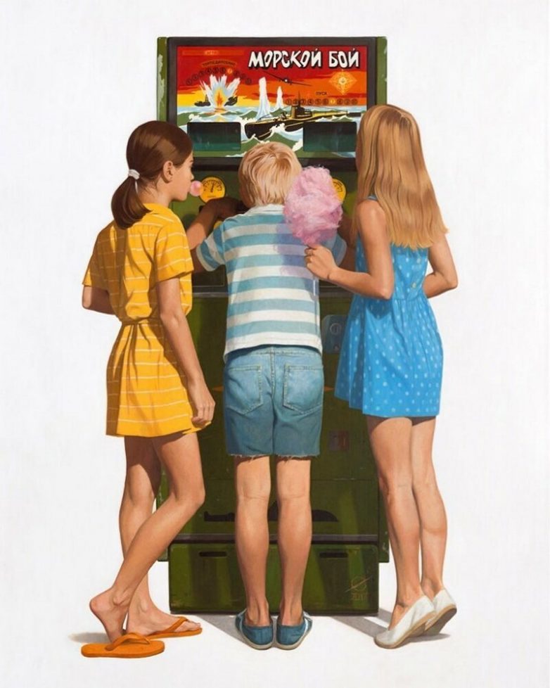 Вторая картинка с начала, где пацан и две девки играют в «морской бой».Скорее из середины 90-х, чем из СССР. На это указывает конструкция шортиков на мальчике. Во первых они из старых джинсов, а джинсы, да ещё из такой ткани могли быть на мальчике только с 90-х годов. Да и обрезаны они почти до колен, а такой обрез шортиков вошёл в моду именно в 90-е годы.