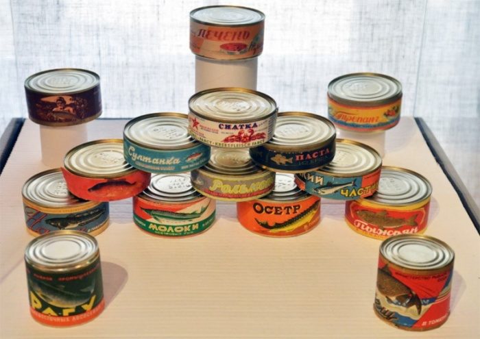 Я помню в 70-е впервые появились консервированные кальмары в банках.И, видимо,«не зашли» в народ.Помнится передача «Вокруг смеха» с А.Ивановым, где сообщили, что в одну из банок положили золотой гарнитур с янтарём.Консервы СССР были в походах, просто перекус.Сейчас берутся, кроме шпрот, наверное, для салатов.Раньше в банке были куски, было, наверное, ТУ на фракции.Сейчас, открыв банку, создаётся впечатление, что добыча рыбы ведётся глубинными бомбами
