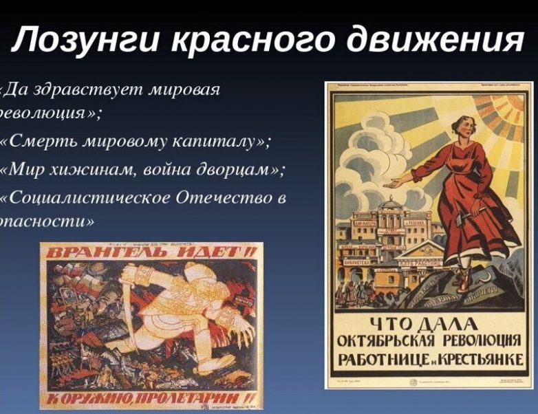 За что воевали красные всем понятно. Их лозунги были краткими, но объемными. Население, в том числе огромное количество офицеров, их понимало. С формированием армии, равно как и с её вооружением вопросов не стояло. Огромное число офицеров вступило добровольно, часть же добровольно-принудительно. Солдаты просто набирались по мобилизационному принципу.