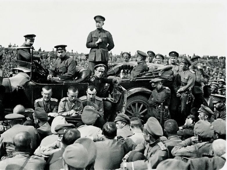 Глава временного правительства Керенский выступает на митинге перед солдатами. Во время войны самое оно, согласитесь!