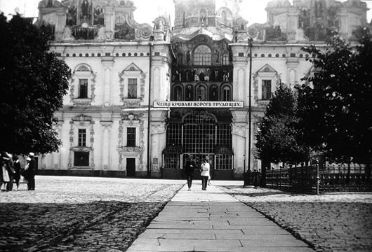 Свято-Успенский собор, Киево-Печерская лавра. Надпись на украинском: «Монахи — кровавые враги трудящихся».