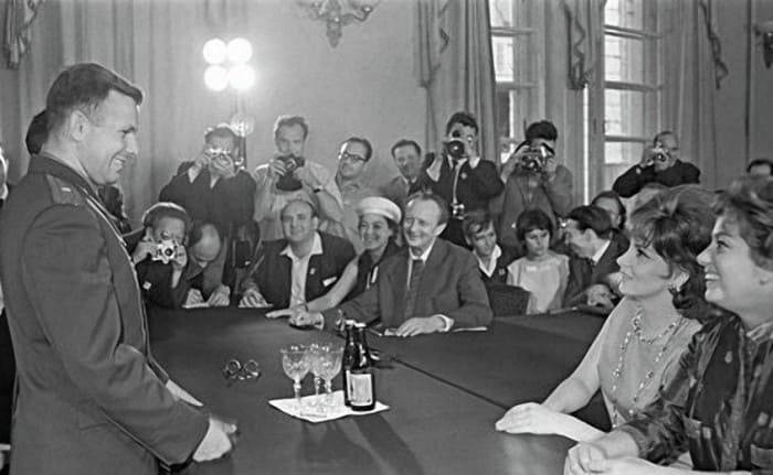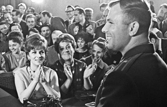 После 12 апреля 1961 г. Юрий Гагарина стал самым популярным человеком и главным героем новостей не только в СССР, но и за рубежом. Когда спустя 3 месяца в Москве открылся Международный кинофестиваль, космонавт стал на нем самым почетным гостем. И даже мировые звезды первой величины считали за честь познакомиться с советским героем. Среди приглашенных знаменитостей была легендарная итальянская актриса Джина Лоллобриджида.