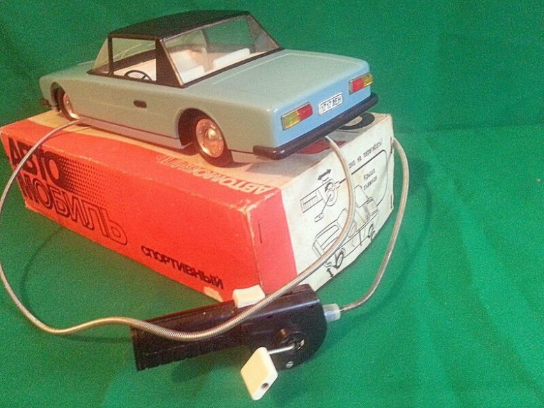 До радио управляемых машинок было далеко.Сначала появились вот такие, с управлением, но на проводе.