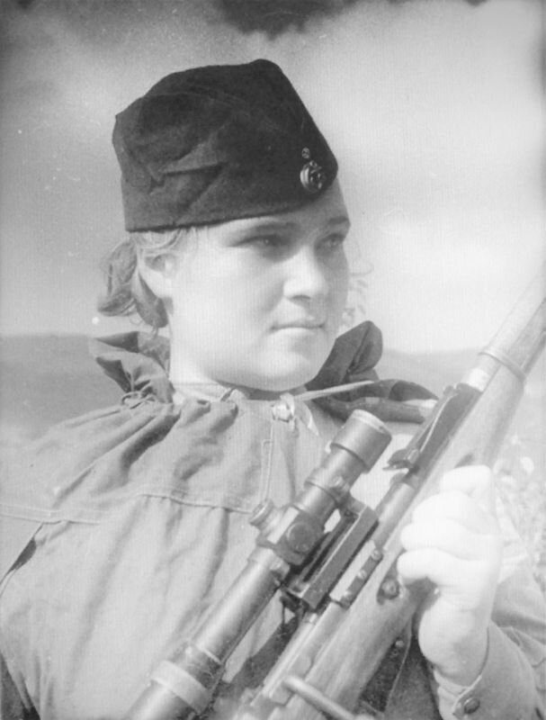 Снайпер 255-й бригады морской пехоты Черноморского флота старший краснофлотецЕлизавета Федоровна Миронова (1924—1943) в районе Новороссийска.