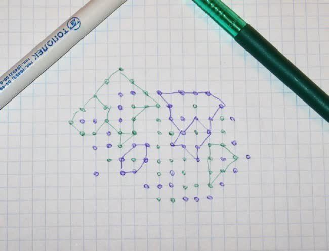 Еще одна стратегия. Играют два человека, по очереди каждый игрок ставит точки на поле и пытается окружить точки противника.