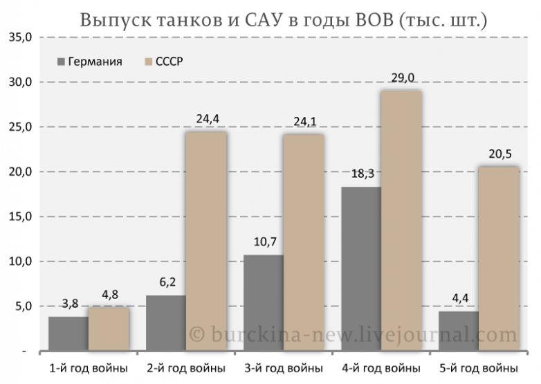 Советская промышленность неплохо так справлялась с наращиванием выпуска собственной бронетехники и прочего вооружения. Это видно на примере выпуска танков и САУ:
