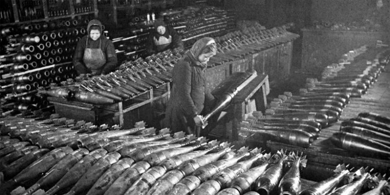 Женщины выпускают 120-мм мины, 1942 год
