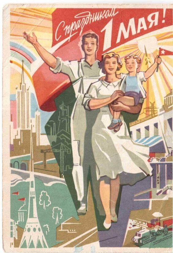 В связи с пандемий в этом году развлекательные мероприятия не состоятся, поэтому мы предлагаем вспомнить советские открытки, посвященные дню труда.