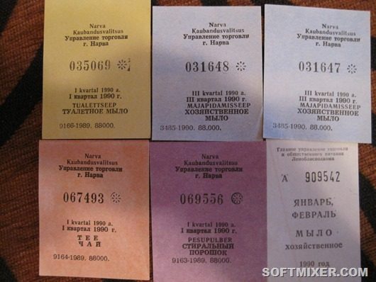 На покупки семья ходила только с цветными «фантиками» (как их тогда называли), и продавцы аккуратно состригали необходимое количество этих самых фантиков в зависимости от покупок.