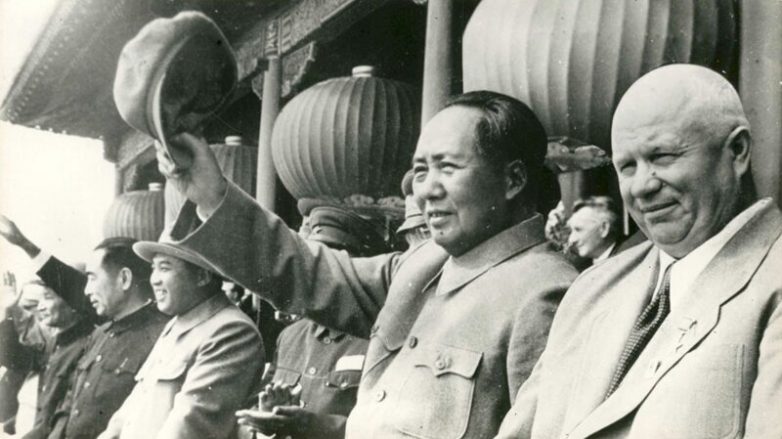 С председателем Мао на балюстраде дворцовой башни Тяньаньмэнь, 1 октября 1954 года. Третий слева, прямо под рукой Мао Цзедуна стоит 42-летний Ким Ир Сен.До того как стать главой государства Хрущёв был за границей один раз — он инкогнито на военном самолёте посетил Германию в 1945 года. Пекинский визит был первым в череде официальных заграничных поездок Хрущёва.