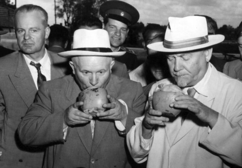 На фото НС поглощает хот-дог. Из США он тогда привёз не только печально известную царицу полей. Сосискам в тесте, котлетам в булочке и автоматам с газировкой советские граждане тоже обязаны тому сентябрьскому турне 59-го года.