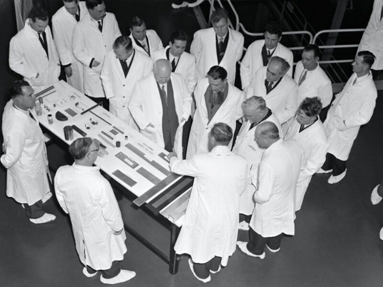 26 апреля 1960 года, Хрущёв, Игорь Курчатов и Николай Булганин в Хараулле, главном во всей Великобритании центре по изучению атомной энергетики.