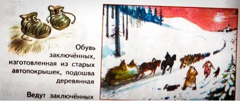 Мало того, что старшеклассникам включили в программу «Архипелаг ГУЛАГ» вместо «Как закалялась сталь» и «Повести о настоящем человеке», так ещё в учебнике «Окружающий мир» для 4-го класса!!! почти целая страница посвящена «миллионам безвинно пострадавшим». И как полагается для детского издания, с яркими иллюстрациями: