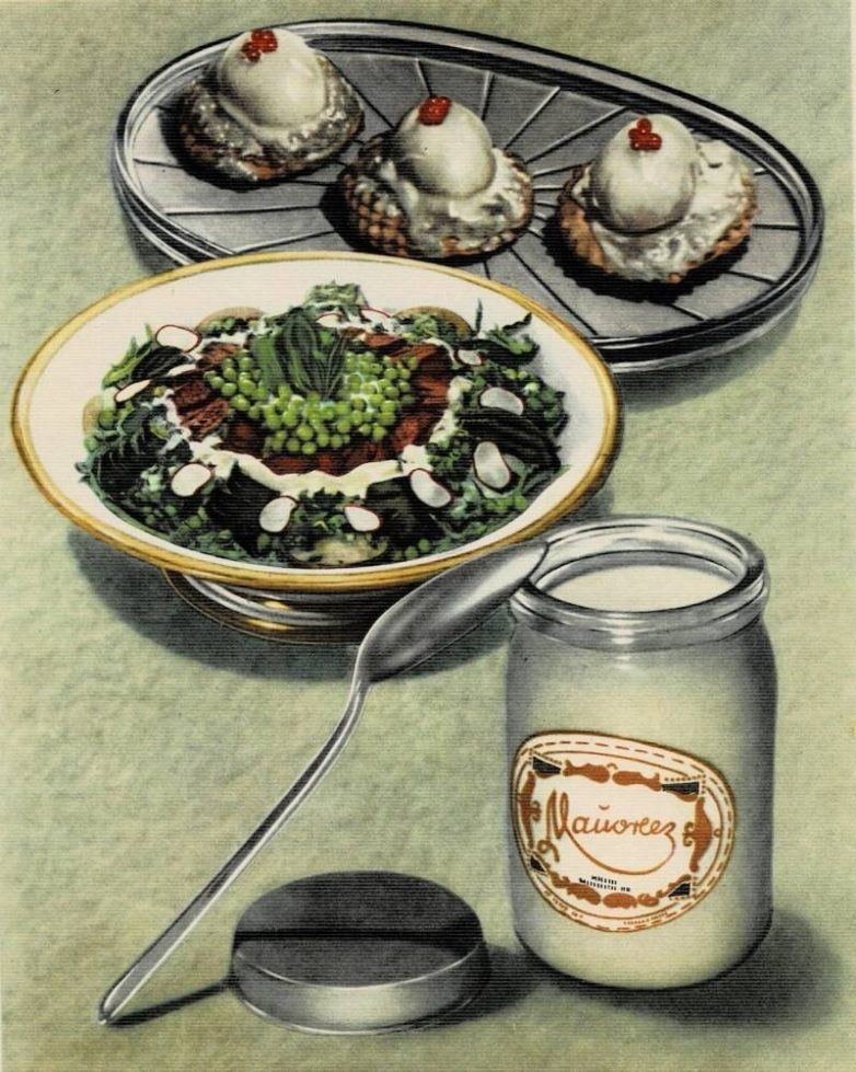 Майонез в баночках был двух видов: «Провансаль» и «Весенний» с привкусом укропа. Ну а поесть салата «Оливье» меня заставили лишь после того, как мама показала мне вот эту картинку. Перед авторитетом такой толстой и умной книги я, разумеется, спасовал