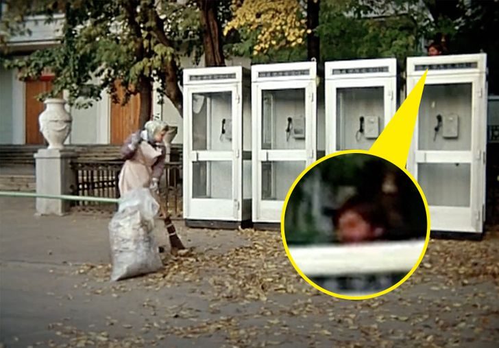 В сцене, где героиня Ирины Муравьевой убирает листву, за телефонной будкой виден мужчина, который трясет дерево, чтобы листья падали активнее.