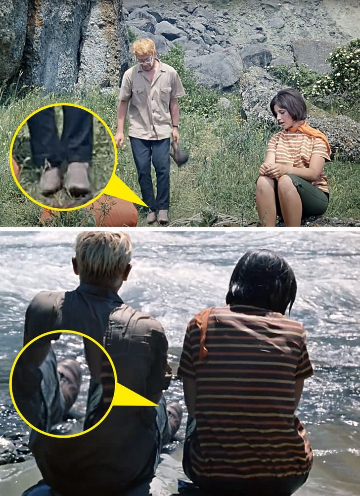 Перед тем как Шурик погрузится в спальный мешок, в котором позже будет «тонуть», он снимет обувь, однако после того, как Нина вытащит его из реки, Шурик окажется в ботинках.