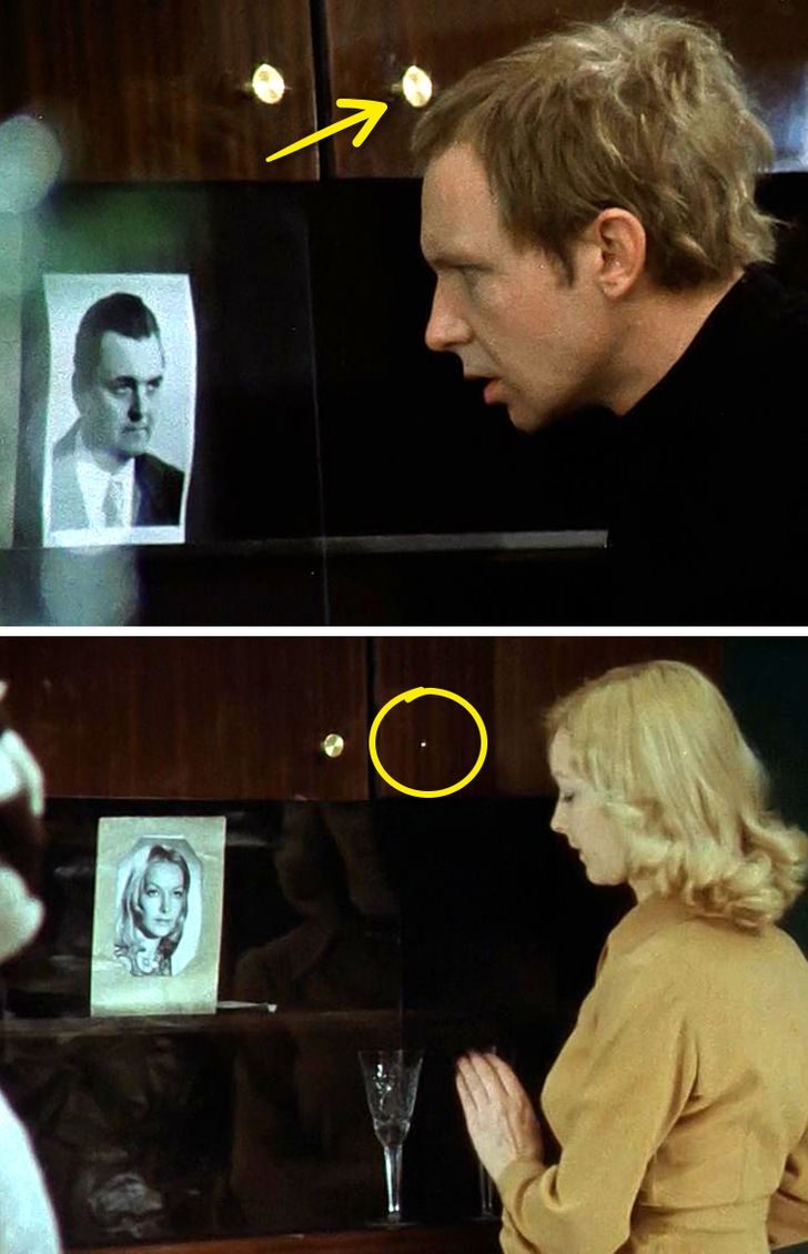 Когда Лукашин попадает в квартиру к Наде, он пытается понять, где находится. Так вот в одном из кадров герой подходит к мебельному гарнитуру, который снабжен двумя ручками. Однако чуть позже, когда приходят подруги Нади, одна из ручек пропадает и так и не появляется на месте до конца фильма.