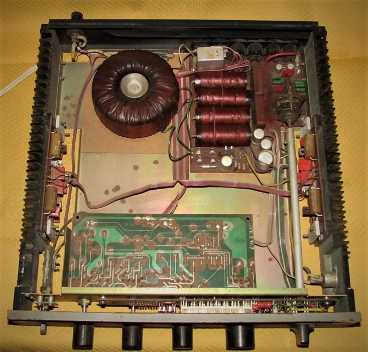 Частотный диапазон – от 20 до 30000 Гц, полный коэффициент гармоник – 0,15%. Были предусмотрены регуляторы тембра, а также индикаторы напряжения на выходе и перегрузки.