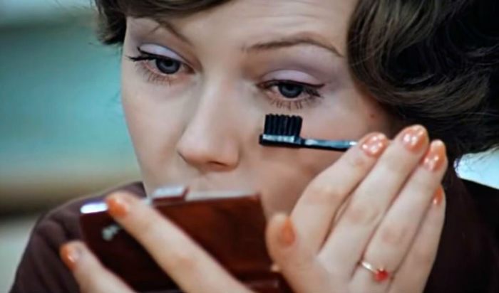 «Плевалка» — так еще называли популярную тушь, ведь ее приходилось смачивать для того, чтобы нанести. Была она в косметичке практически каждой советской девушки, но все же давала она зачастую лишь удлиняющий эффект. Однако смекалистые девушки нашли способ добиться объема: перед тем, как красить ресницы, наносили на них немного пудры.