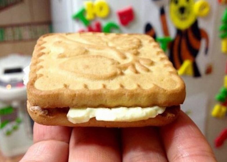 Юные кулинары любили готовить оригинальное пирожное, которое состояло из двух печений, смазанных маслом и соединенных в одно кондитерское изделие.