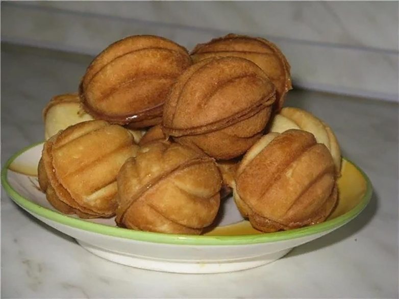 Такое лакомство можно было приготовить в сковороде особой формы, которая позволяла выпекать половинки орешков. Их наполняли сгущенкой и две части соединяли в целый орех.