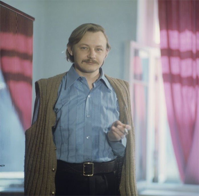 Кононов красавчик. Одежда, причёска, усы и сигарета с фильтром-стиль 70-х. Смешно и одновременно приятно смотреть.