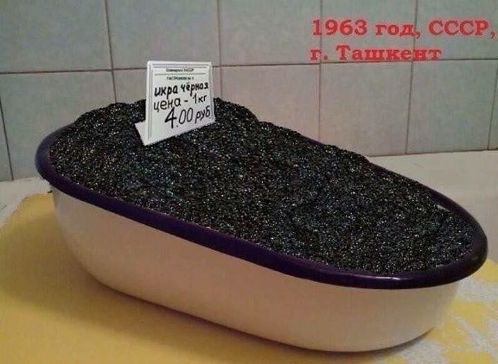 В 1960 году 93% всего производства осетровой и белужьей икры приходилось на Советский Союз. (на фото цена фотошоп)