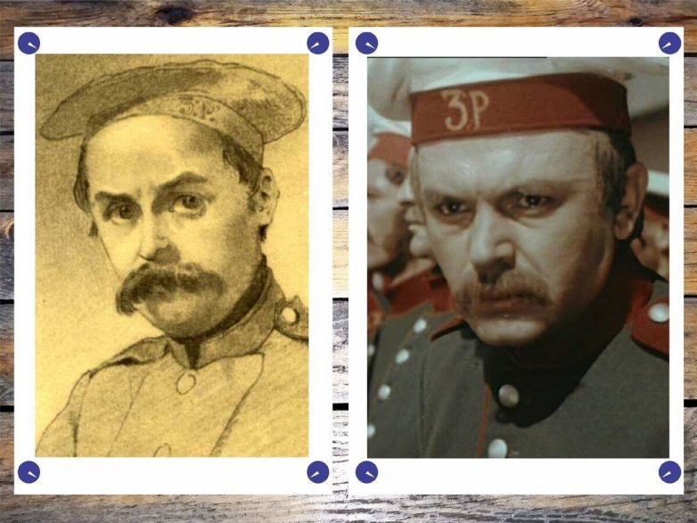 Автопортрет Шевченко времён службы и Бондарчук в роли поэта в этот период