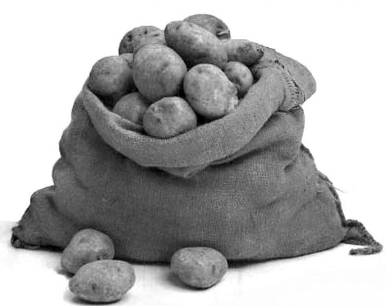 Осень. На зиму нам нужно сделать запас картошки. Не килограмм или десять. Покупали большими мешками. В каждый мешок вмещалось примерно 35 — 40 кг. картофеля. Мы покупали от 4 до 6 мешков (конечно в зависимости от размера семьи). Такой картофель родители заказывали у себя на работе. Отец на заводе, мама в своём НИИ. Мешки привозили на грузовике к подъезду. Хранили картошку в подвале дома, где у каждой семьи было своё место, с дверью и замком.