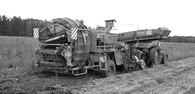 Такой комбайн ехал по полю, собирал картофель, а мы четверо находились в специальной полуоткрытой кабине. Перед нами шла конвейерная лента, мы откидывали с неё камни, различные железяки, которые вместе с картошкой выкапывал комбайн. Девчонки визжали, когда по ленте вдруг пробегала мышь или крыса. В кабине был сильный шум и вибрация.