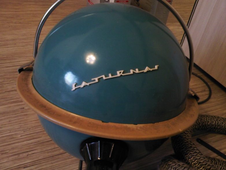 Это все первые варианты малоудобные и не очень красивые, образца середины 50-х годов. Мой первый домашний постоянный пылесос, который я помню, назывался «Ракета». Дизайн — соответствующий.