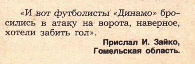 В СССР такое называли «смешные ненормальности». В то время еще не было блогов и социальных сетей, поэтому читатели присылали забавные истории в журналы. Это были мини-выписки из объяснительных, а также цитаты из теле- и радиопередач, даже выдержки из судебных решений.