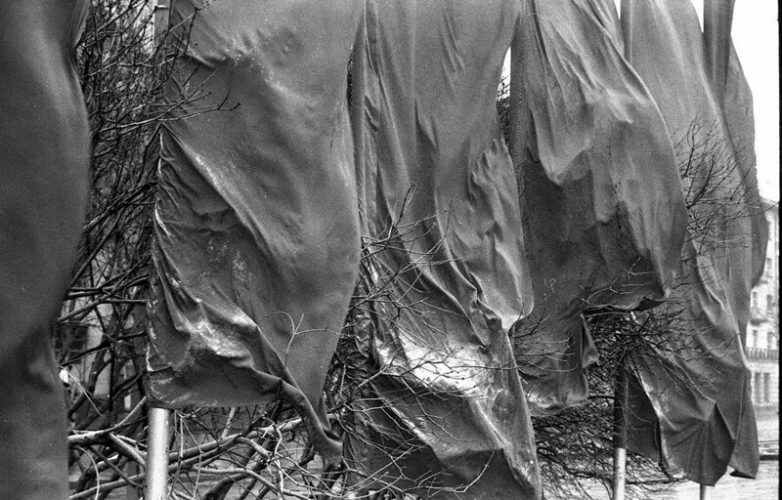 Замерзшие флаги в День Победы. Театральная площадь. Новокузнецк, 1985.