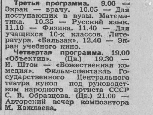 А насчёт «тогда смотреть нечего было»: это, может, вам не было, но отнюдь не всем. Тогда каждый телезритель мог выбрать себе телепередачу, художественный, документальный или научно-популярный фильм на свой вкус. А вот сейчас да, действительно посмотреть нечего.