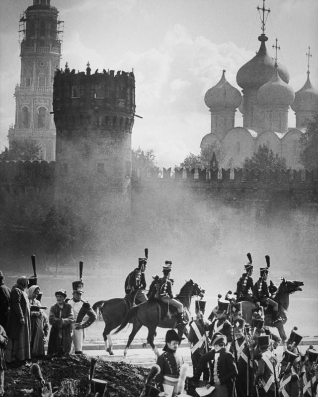 В 14:30 Бондарчук дал команду, и пиротехники сделали свое «черное дело»: Москва запылала. Зрелище было одновременно и страшное, и прекрасное. В ослепительном бушующем пламени сновали испуганные люди. Всё было настолько естественным, что требовалась огромная выдержка, чтобы не броситься в огонь на помощь погорельцам. <...> С грустью мы смотрели на остатки декорации, которую создавали почти полгода.