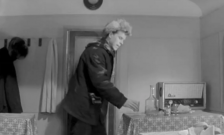 Фильм «Девчата» 1961 года. Роль рабочего, который забежал попить в столовую. Актеру 25 лет.