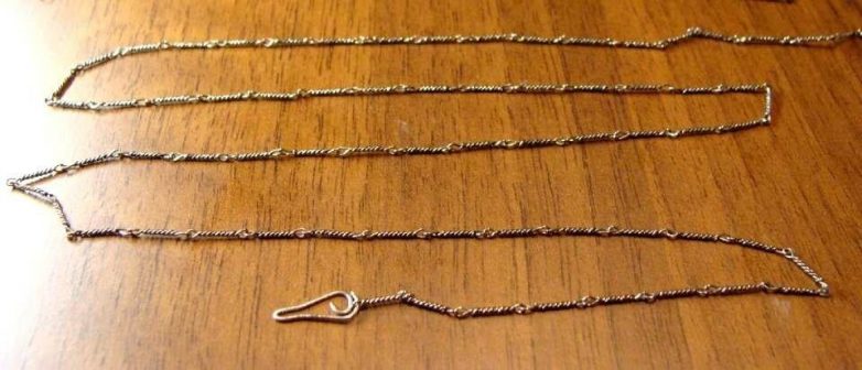 Самодельные цепочки так же были у каждого. Самая простая цепочка делалась из медной проволоки: наматывали на гвоздь и потом нарезали по 5-6 витков. Собирали цепочку: