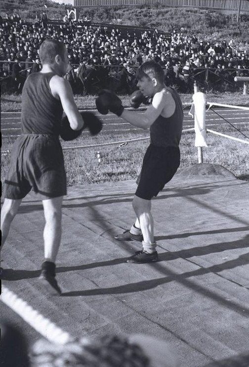 1950 год. Петрозаводск. Соревнование по боксу на стадионе Профсоюзов.
