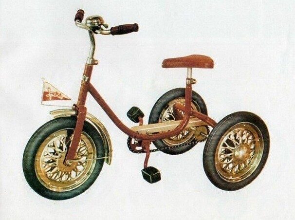 Детский трёхколёсный велосипед “Спарите” (“Стрекоза”) с цепным приводом производился на заводе приводных цепей в городе Даугавпилс Латвийской ССР.