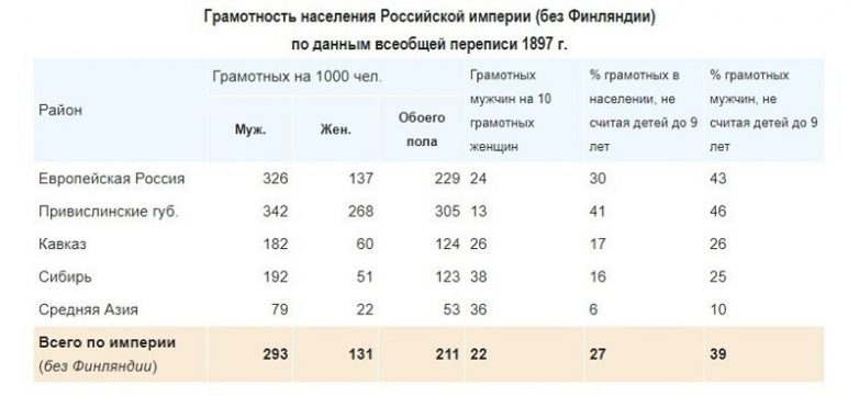 Страшно наблюдать как даже в области столицы, при царизме, неграмотность заваливала за 40 %. То бишь люди даже роспись не могли поставить. Тверская область рядом с Москвой и там вообще мрак, 65 % неграмотных. в Вологодской 70 % неграмотных.